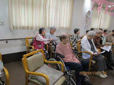 入居者様は演奏に合わせて合唱🎶をしました❕