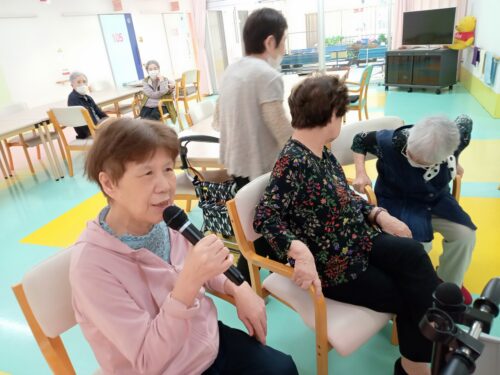後ろの入居者様も一緒になって歌っていますね♪♪( *´艸`)