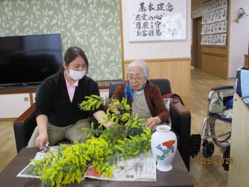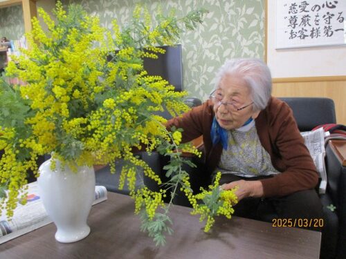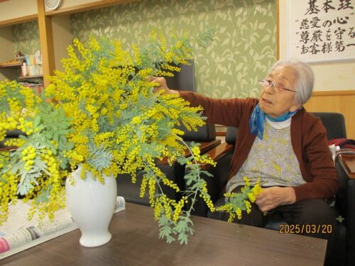 頂いたミモザを沢山の花瓶に生けて下さいました。