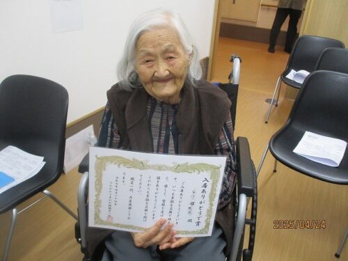 さわやかくまがや館 職員会議 2025-04-27 2025-04-27 4/24職員会議を行いました🌟 4/18に入居してくれたW様です💕 表彰状授賞式✨✨ ニッコリ笑顔でのワンショット📸 投稿者:猫編集長🐈