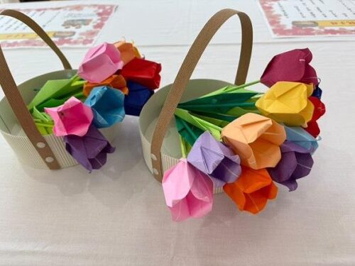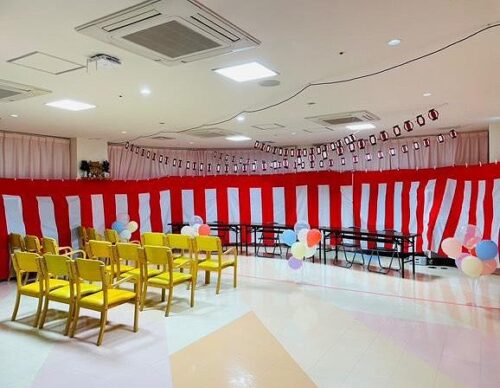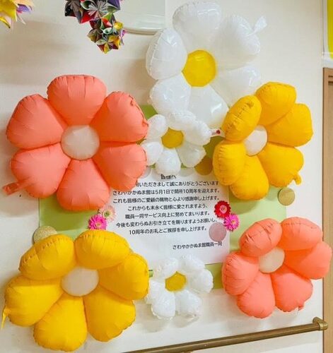 利用者様に作っていただいたお花や膨らませていただいた風船🎈