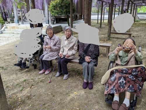 さわやかいずみ館 ドライブ② さわやかいずみ館 2025-04-29 2025-04-28 こんにちは😄 昨日に引き続き 藤見学の様子をお届けします✨ まずは 記念撮影📸 そのあとは 花より団子というわけで 藤の花を見ながら おやつを食べました🍪 最後は みんなで 写真を撮りました😄
