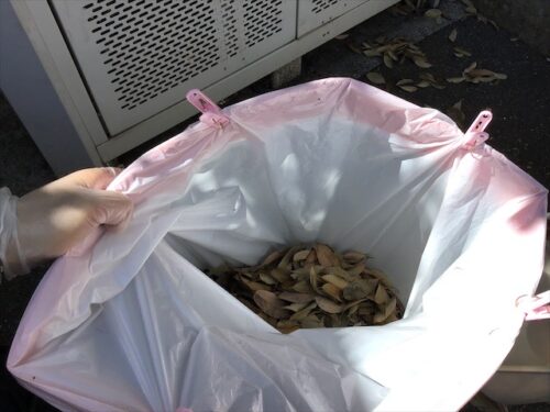箒で集める人、袋を広げておく人、分担して綺麗にしていきますよ〜。
