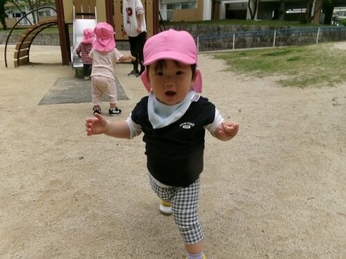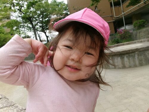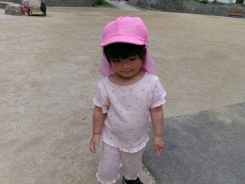 新しい帽子をかぶってたくさん遊ぶぞー!