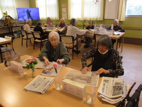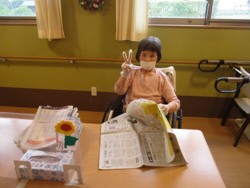 新聞紙折を皆さんに手伝って頂いてます✋✋✋