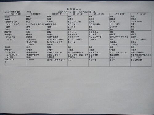 5月の献立をお届けします