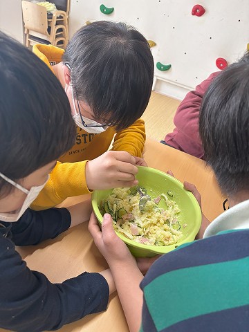 ポテトサラダを飾り付けるグループに分かれて行いました😆