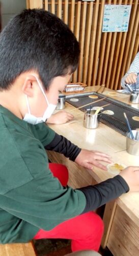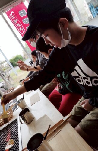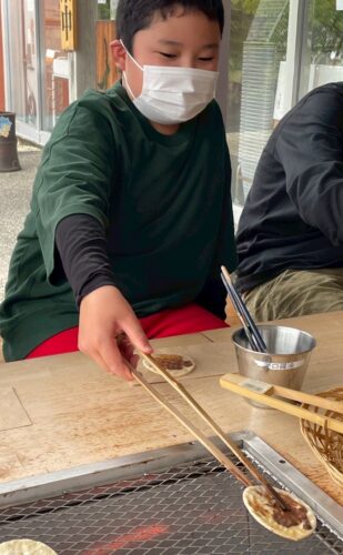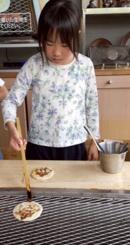 今回は畠山製菓に行き,おせんべいを焼きました。