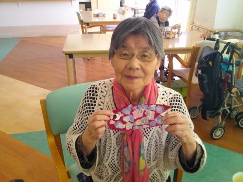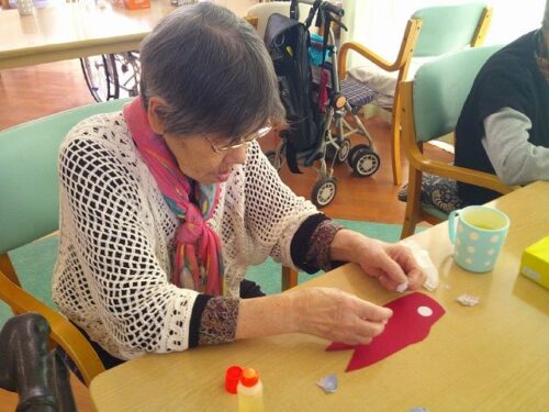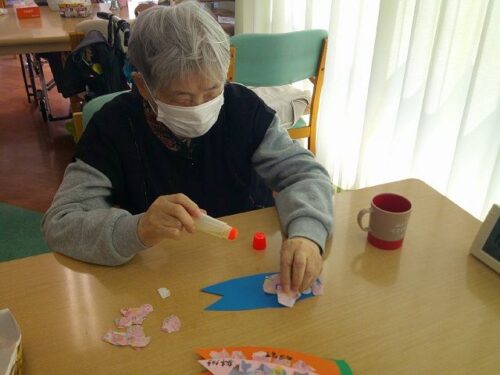 こいのぼりのうろこの部分を、自分の好きな色紙で飾り付けます。
