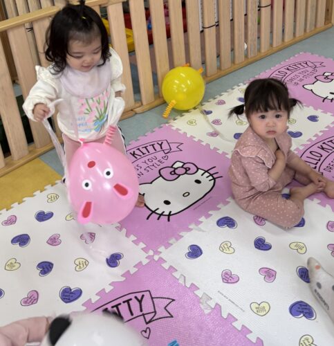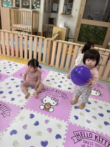 先生に抱っこされたりボールあそび🏐や立っちも上手にして遊んでいます🍀