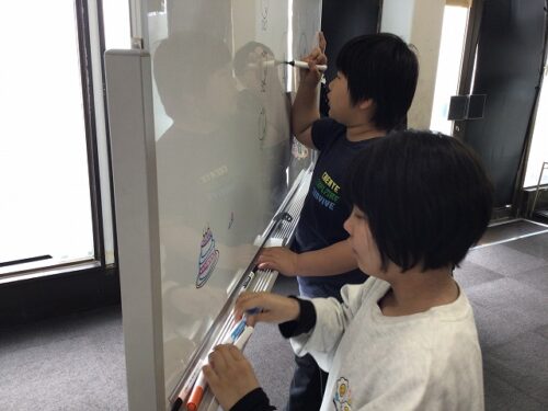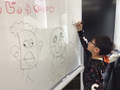 おえかきが好きなお友達は、ホワイトボードいっぱいに好きな絵を描きました😊✨