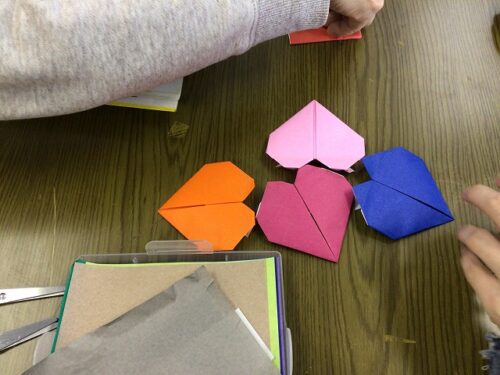 折り紙で、ハート💖やお星さま🌟の飾りを作ってます😊✨