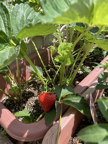 去年の夏から大事に大事に育てているイチゴちゃんが、やっと赤くなってきました。