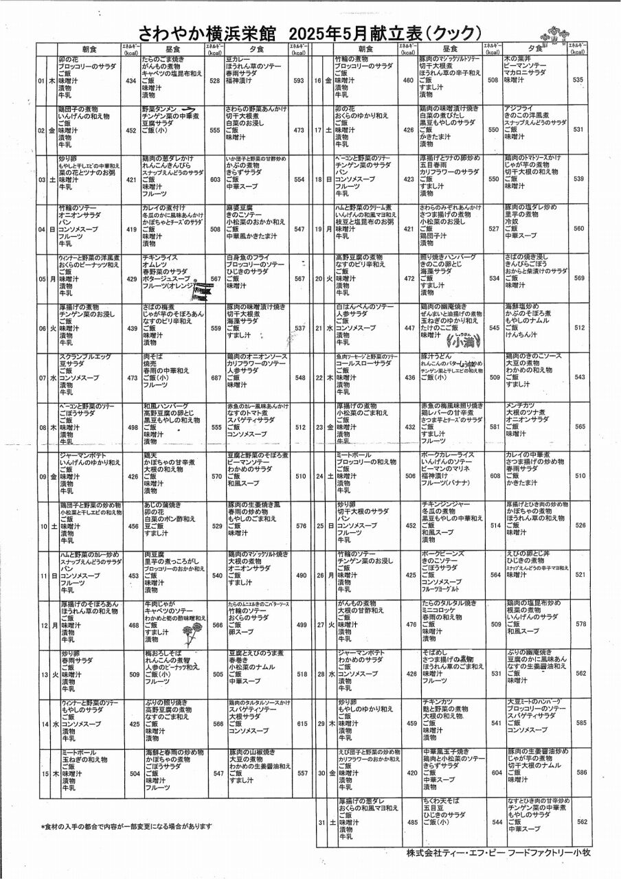さわやか横浜栄館 🍚今月の献立です🍙【さわやか横浜栄館】 2025-05-01 2025-05-01 こんにちはさわやか横浜栄館です! 🍽 5月の献立を公開します 🍽 いつも栄養バランスを考えて食事を提供してくださっている厨房さんには頭が下がります😊 担当 武田