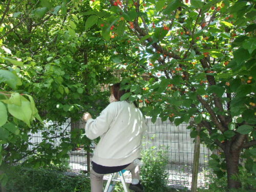 ひがしおおさか館の駐車場にサクランボが咲きました!!