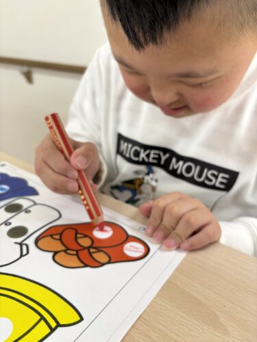枠からはみ出さないよう丁寧に塗っています✏️