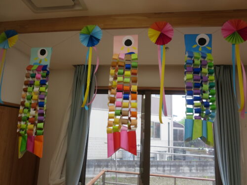 さわやかグループホーム なすしおばら すいせんユニットの様子 2025-05-03 2025-05-02 もうすぐ『子供の日』です。 みなさまに鯉のぼり飾りを作って頂きました🎏 完成! 可愛らしい鯉のぼりの出来上がりです(*^▽^*)