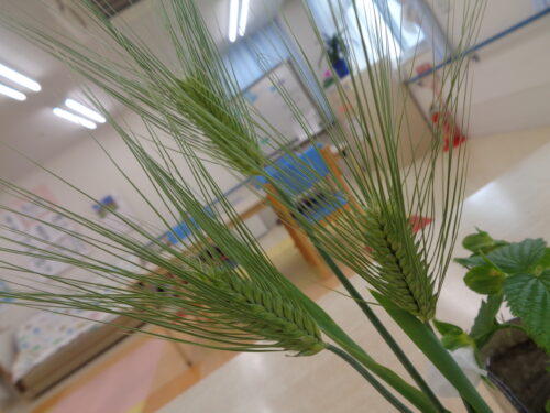 4階のテーブルの花瓶に中村様が青々とした麦を生けられておりました✨