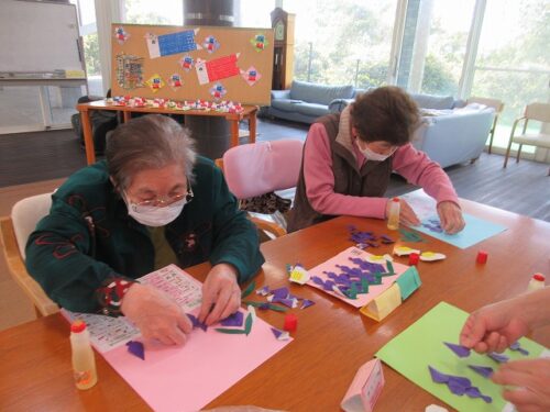 さわやかレークサイド中の原 5月のカレンダー(LS中の原デイサービス) 2025-05-02 2025-05-02 皆様こんにちは。早いものでもう5月が始まりましたね!! 今月のカレンダーも皆様とても上手に出来上がりましたので紹介したいと思います。 皆様一生懸命、折り紙で作っています。 今月のカレンダーは藤の花と可愛らしいハチさんでした。 LS中の原DS 名越