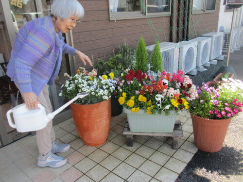 さわやかひだか館 お手伝い(>_<)💦① 2025-05-17 2025-05-13 こんにちは‼ひだか館斉藤です😐 今回は❓ 女性入居者様の様子をお送りします👩 🌼🌷玄関先で花に水を上げて頂いてます🌼🌷 なので⁉育ちがとても良いですヾ(≧▽≦)ノ いつもいつも❕❕ ありがとうございます💖💖💖💖