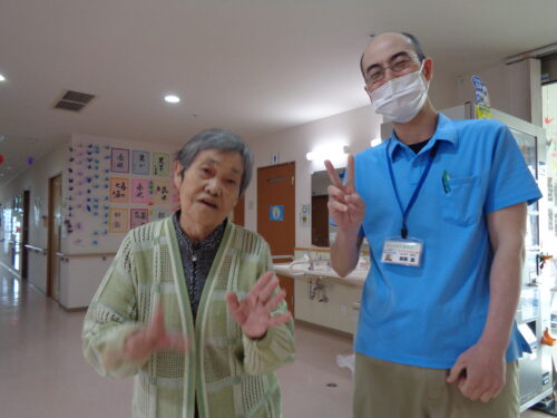 リハビリも兼ねて斎藤PTが施設内を案内してくれたときの一枚です📷🌟