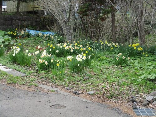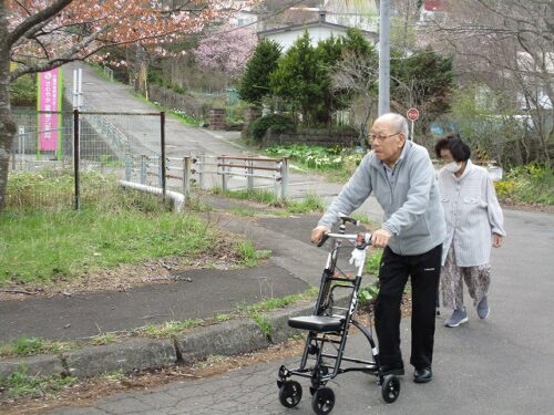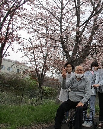 さわやか室蘭弐番館 3階 お散歩♪ 2025-05-04 2025-05-03 皆様こんにちは♪ 施設横の桜並木が見頃を迎えました 歩行訓練を兼ねてお散歩です 足元に注意しながら 市道との接続部は窪みがあるので 注意しながら敷地外へ 沢山の水仙が咲き誇っています 桜をバックに記念撮影です🌸 また行きましょう♪