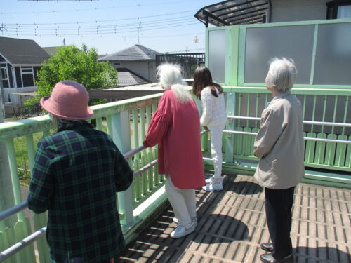 歩道橋も登って