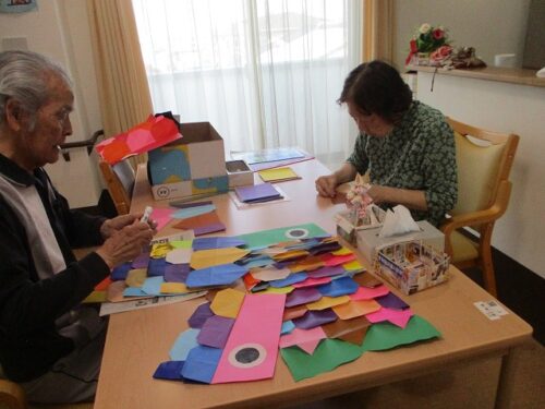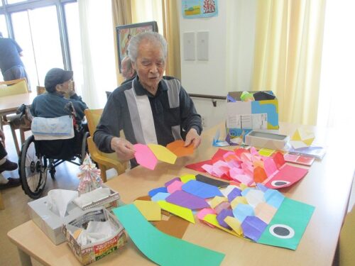 さわやかさがみはら館 こどもの日🎏 (さがみはら館) 2025-05-05 2025-05-05 こんにちは! さがみはら館です☺ 本日は”こどもの日”🎏 コツコツと作り上げて下さいました(*^_^*) 3階の壁面にて 気持ち良さそうに泳いでおります♪ (西島)