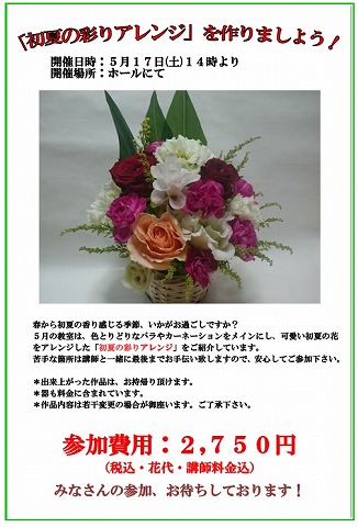 さわやか田川館 最新情報 フラワーアレンジメントのポスター😄💐❗ [さわやか田川館] 2025-05-06 2025-05-06 5月17日に開催される、 フラワーアレンジメントのポスターが届きました😄💐❗