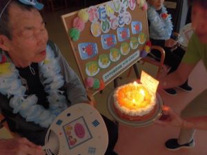 職員お手製のケーキと、皆様とのカラオケで盛り上がりました。