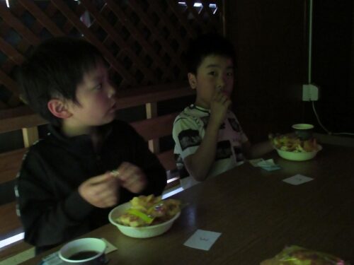 お菓子やジュースと一緒にまったりと過ごした子どもたちでした!