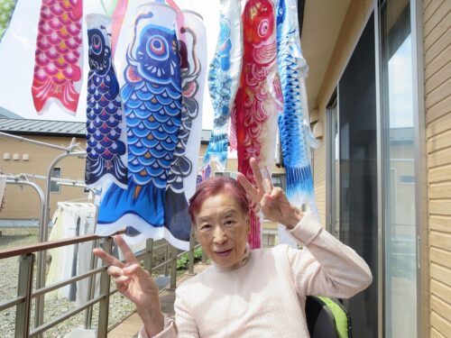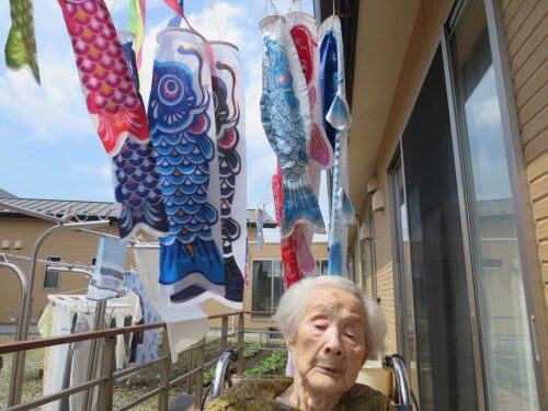 さわやかグループホーム なすしおばら すいせんユニットの様子 【子供の日その①】 2025-05-07 2025-05-06 五月五日子供の日晴天🌞 青空にそよぐ鯉のぼり🎏と一緒に記念撮影をしました。 この後、子供の日のお祝い善を頂きました(*^_^*)