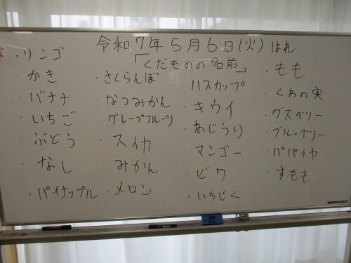 さわやか室蘭弐番館 3階 6日活力朝礼♪ 2025-05-07 2025-05-07 皆様こんにちは♪ 昨日の様子をお届けします 9時からラジオ体操です 腕を大きく動かします 頭の体操は果物の種類お答え頂きました🍎 笑い声溢れる一日になります様に☆