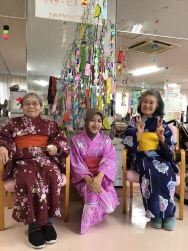 お好きな浴衣を選んでいただき、職員が着付けを行いました😉