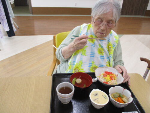 ちらし寿司の提供をさせていただきました。 美味しそうにペロリと完食です。