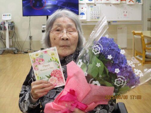 さわやかながれやま館 母の日おめでとうございます。さわやかながれやま館(千葉県流山市介護付き有料老人ホーム) 2025-05-08 2025-05-08 母の日にご家族様より綺麗な紫陽花が届きました・・・ とても大きな紫陽花ですね。「娘からなの~」と大喜びです 素敵な笑顔をいつもありがとうございます。 これからも夫婦仲良くお過ごし下さい (^^♪ さわやかながれやま館 さいとう