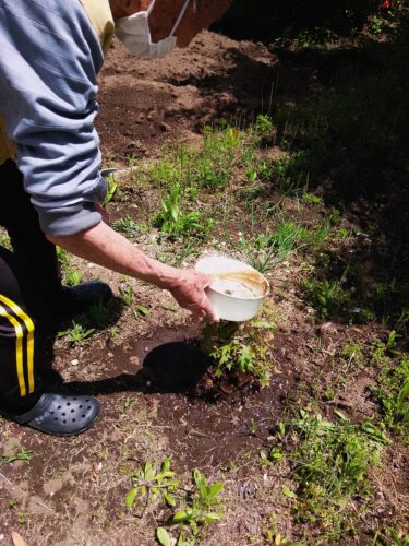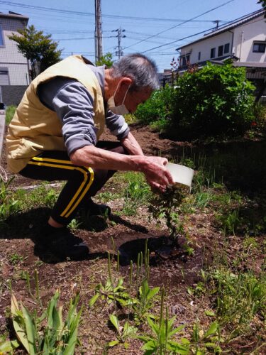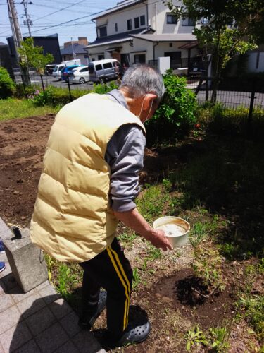 入居当時は居室にて お世話をされていましたが 現在は1階のテラス前の畑に 居場所を変えています