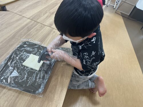 まずは耳を切ったパン🍞に