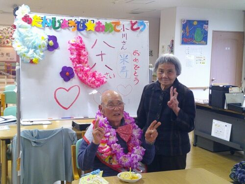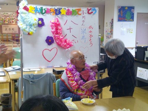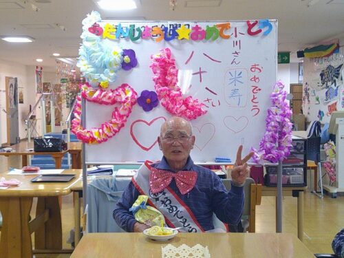 さわやか直方館 お誕生日会♡ 2025-05-09 2025-05-08 こんにちは🤩直方館デイサービスセンターです💛 先日、米寿を迎えられた方の お誕生日会が行われました💙 蝶ネクタイがお似合いです✨ 歌が大好きで、いつも元気でいらっしゃいます🥰 利用者様とも仲良く、楽しそうです🎊 担当:おおくぼ