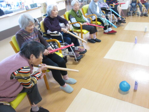 皆様には棒を持ってもらいボールで倒します👻