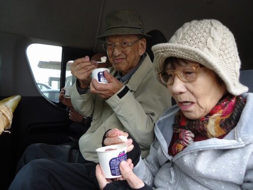 さわやか室蘭館 2F桜ドライブ③🌸 2025-05-11 2025-05-11 皆様こんにちは! 本日は、2Fの桜ドライブの様子をご紹介します(*'▽') 桜満開綺麗でした🌸 道の駅でアイスを購入しました🍨 冷たくてさっぱりしますね♡ 「美味しいよ♡」 ドライブ楽しかったですね🚙