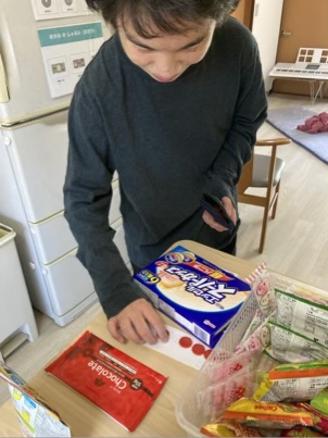 値札を見て、お金を数えながら支払いをしています😊