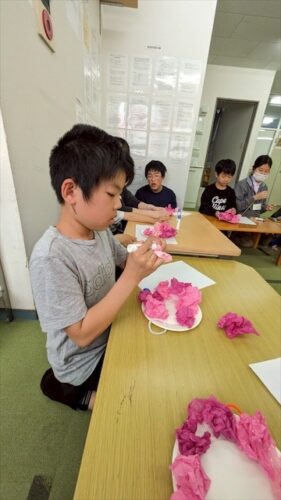 あかいわ館では、母の日に向けて、カーネーションのリースを作りました!