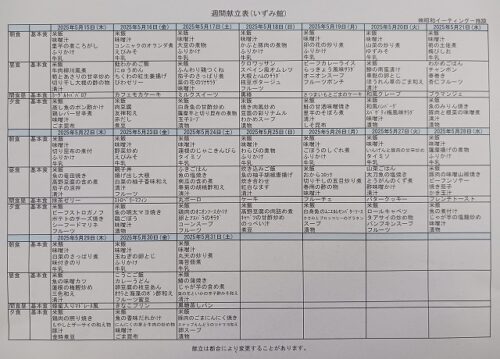 さわやかいずみ館 献立表 さわやかいずみ館 2025-05-15 2025-05-11 こんにちは😊 5月15日~5月31日 献立表です🍽️ 予定表 5月17日(土) 訪問理美容 5月25日(日) 誕生会 ※あくまでも予定なので、変更がございます。