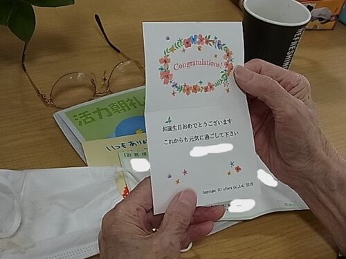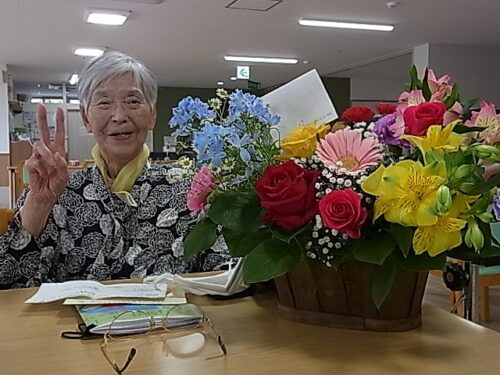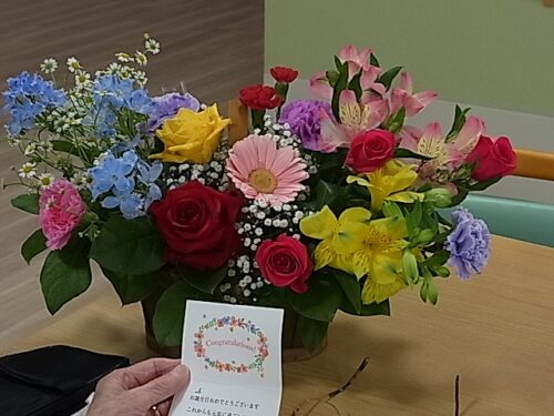 さわやか室蘭弐番館 2階 お誕生日🎂 2025-05-11 2025-05-11 皆様こんにちは♪ お誕生日に合わせ ご家族様からお花が届きました 素敵な笑顔です☆ メッセージカードが添えられていました 同じテーブルに座る入居者様と お話が盛り上がっていました おめでとうございます 素敵な一年になりますように☆