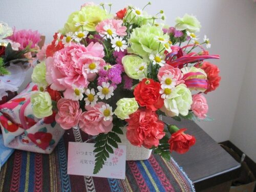 本日も、母の日で届いたご入居者様へのプレゼントを