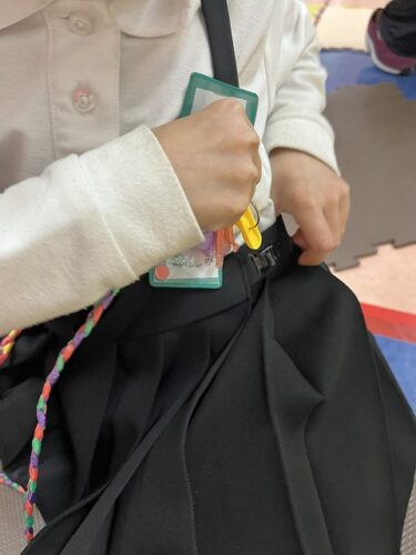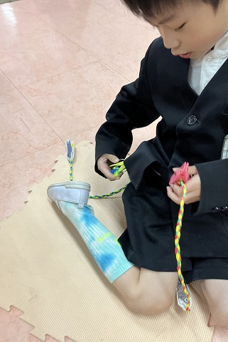 しっぽの先に洗濯ばさみが付いてるから、自分で付けてみよう🤏