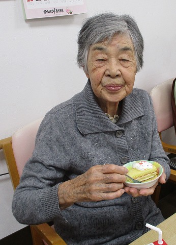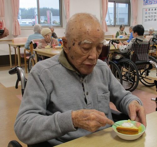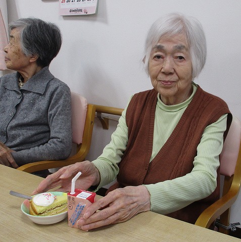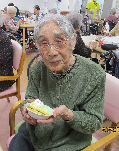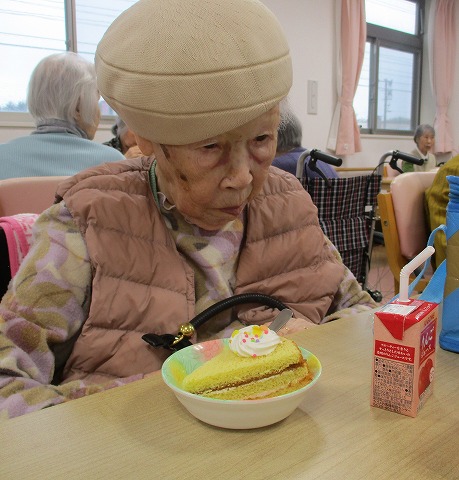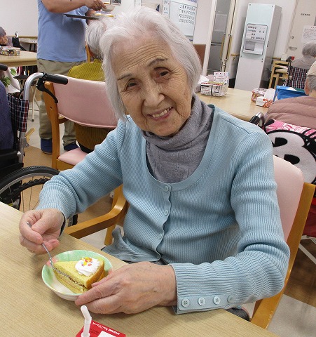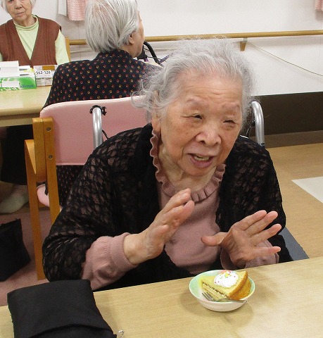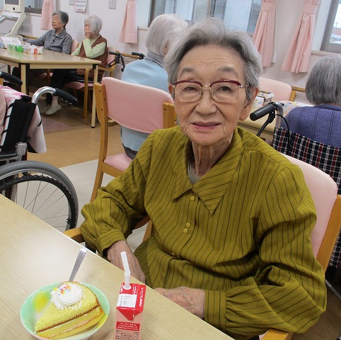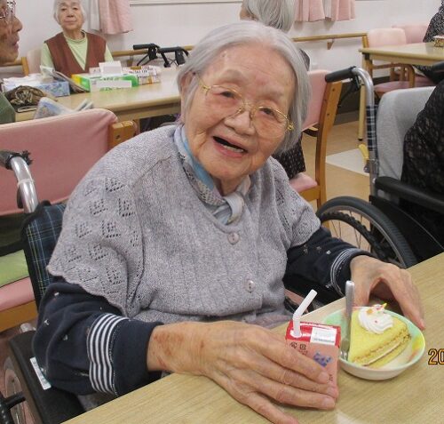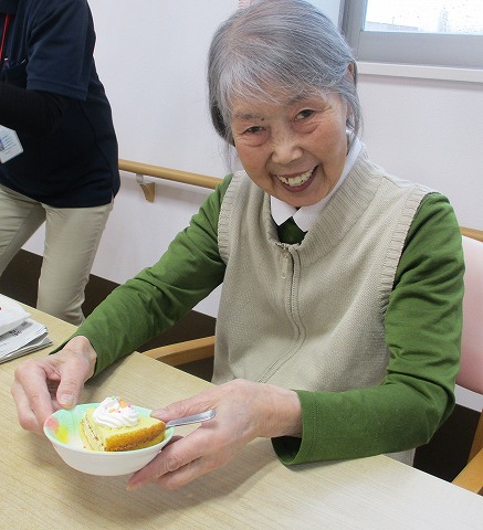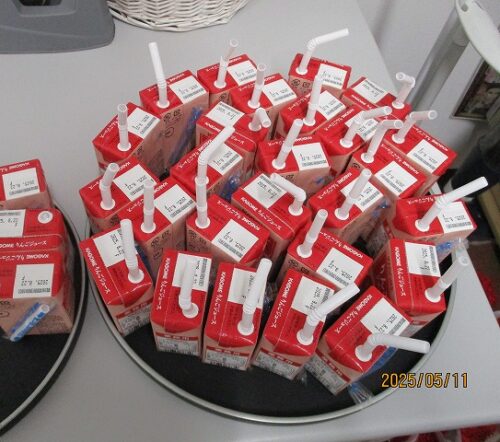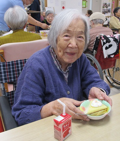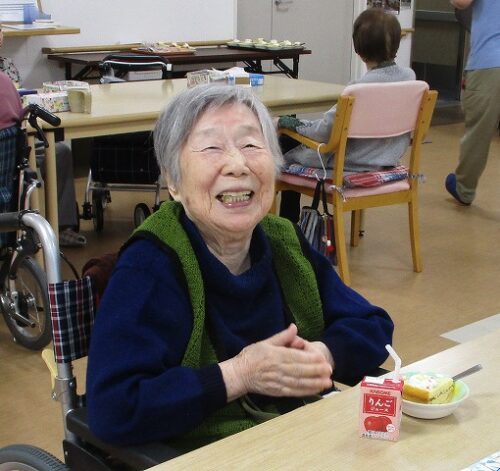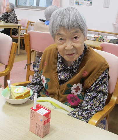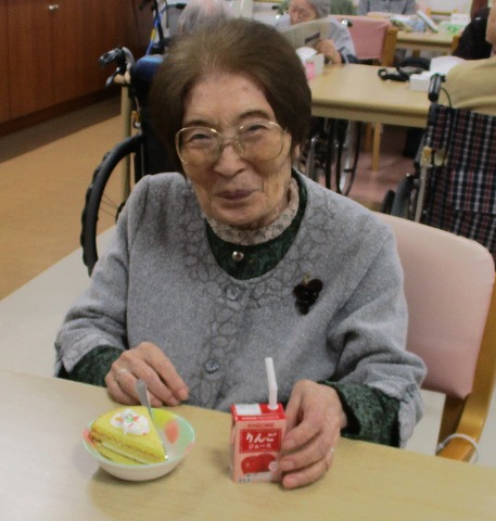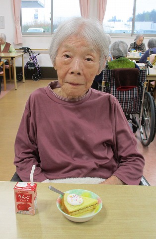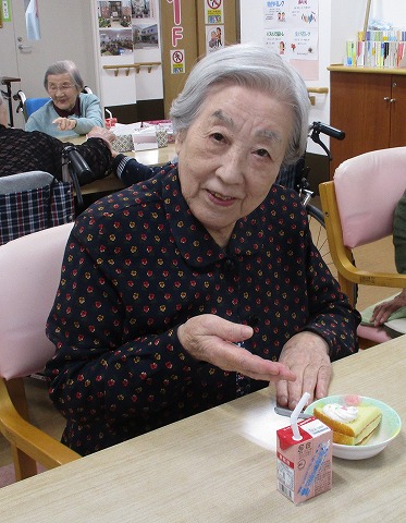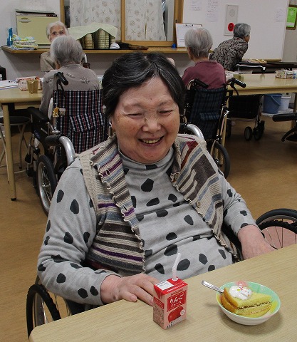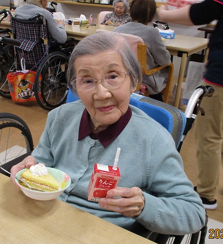 ご入居者様に食べていただきました!リンゴジュースも飲んでいただきました!