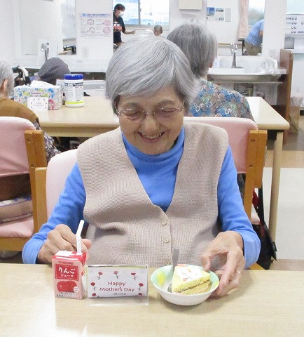 昨日は「母の日」ということで、おやつの「いちごケーキ」にすこーしデコレーションして