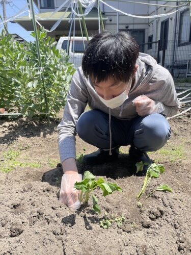 あゆみさんと一緒にサツマイモ🍠を植えました😊